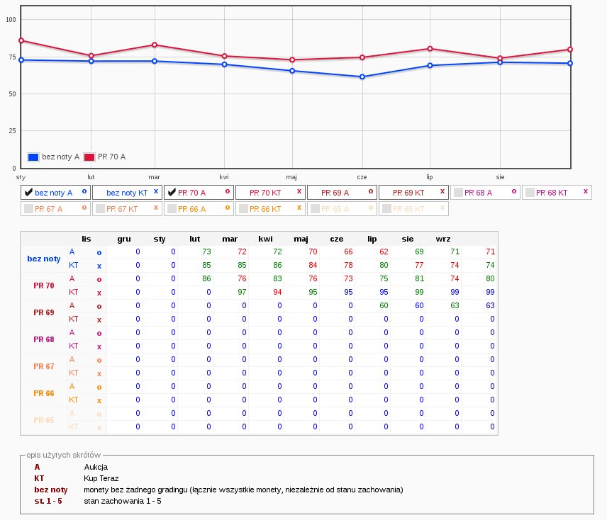 W chwili obecnej dostępne są tylko podstawowe informacje katalogowe na temat powyższych monet. Dane na temat cen są cały czas gromadzone i na początku listopada będą dostępne także aktualne notowania monet.